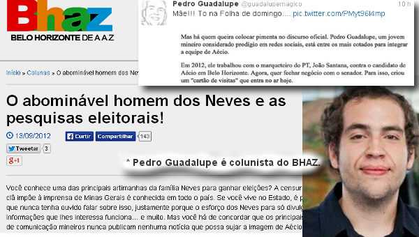 A matéria menciona que Guadalupe teria trabalhado para João Santana, a serviço do PT, contra o candidato de Aécio à Prefeitura, Marcio Lacerda.