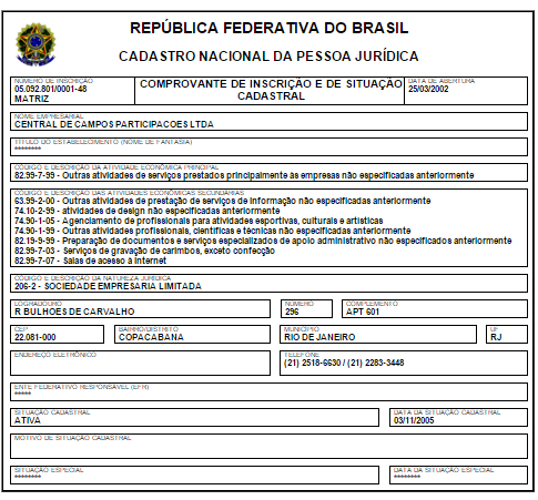 Não há endereço de pessoas, apenas de empresas. Da mesma forma, por preservação de intimidade, embora tenha sido publicado no Diário Oficial, não se reproduziu a sentença de divórcio
